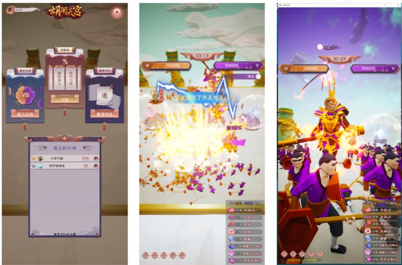 两位仙人分别坐镇两端,双方派遣小兵、天兵、天将、神兽、悟空(还有更多互动会持续更新!)去围攻对方仙人取得胜利。